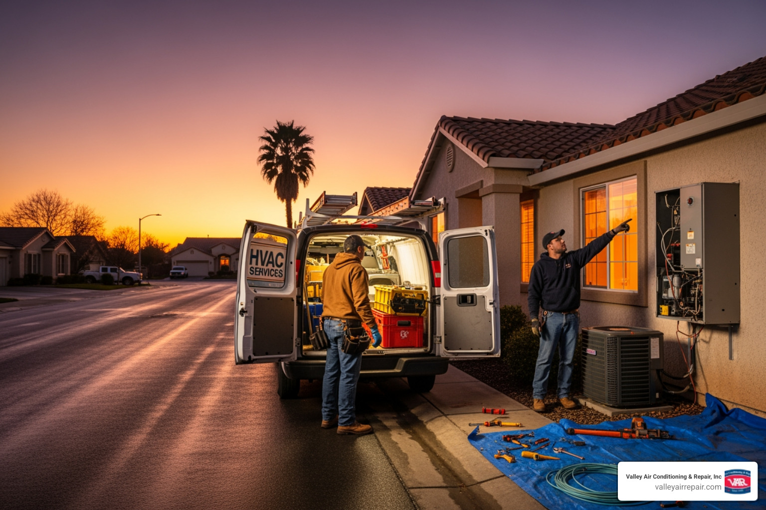 It's 10 PM on a cold Clovis night, and your heater just quit. Your family is bundled in blankets, and the temperature inside keeps dropping. This isn't a situation where you can wait until morning or schedule an appointment for next week. When your heating system fails completely, you need a reliable solution fast.